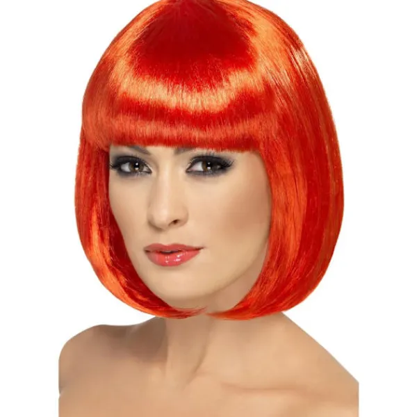 UTSM3339 – Partyrama Kort Peruk med Lugg, One Size, Orange.