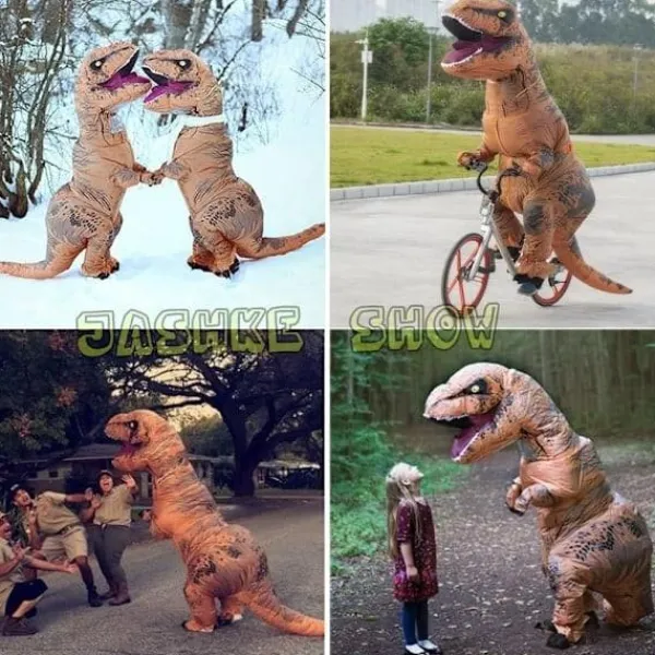 Påsk Special! Högkvalitativ Uppblåsbar Tyrannosaurus Rex Dinosaurie Dräkt Halloween Vuxen Maskeraddräkt (Brun) Vuxen One Size (160-195cm)