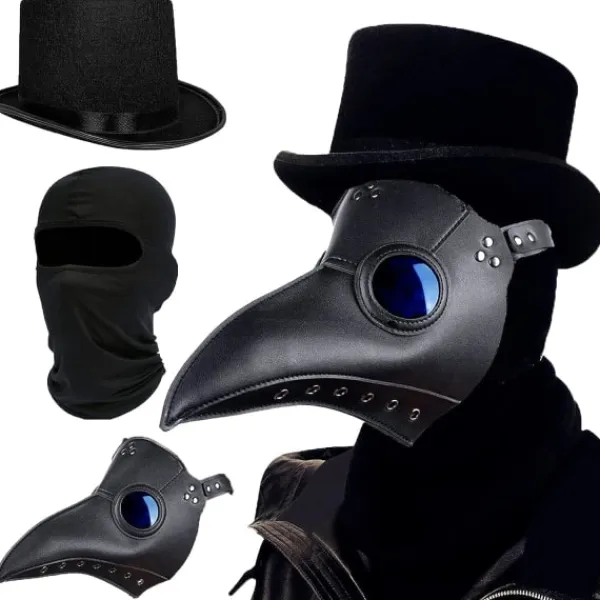 Heltäckande lång näsa pest läkare huvudmask svart, bh för Mardi Gras, maskeradfest, jul, halloween, kostymfest, punkfest och så vidare