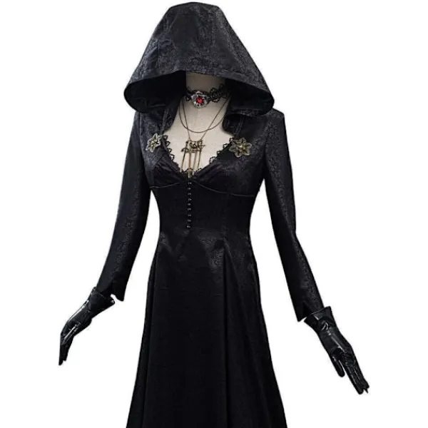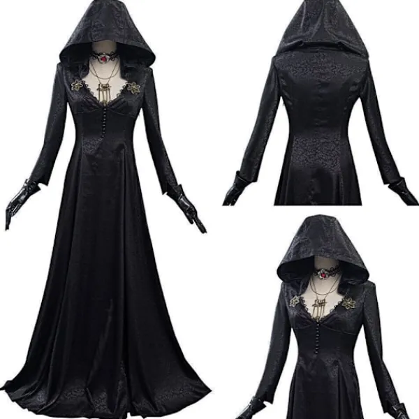 Resident Evil: Bela Dimitrescu Vampyrdam Cosplay Kostym Bela Klänning+Peruk set