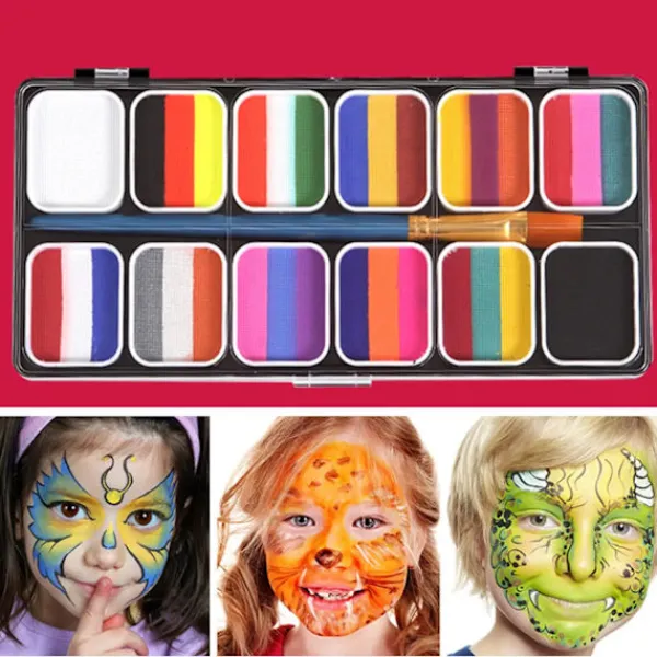 Beskrivning: Kroppsmålningskräm: 12 Ansikts- och Kroppsfärger och 3 Borstar, Professionell Palett, Ansiktsfärg. : Ljusa färger, vattenlösliga pigment, lätta att rengöra, kan användas av vuxna och barn. Lätt att Applicera: Lättpigmenterad vattenbaserad formula ger jämn, stark täckning och fäster hela dagen. 12 Färger: Du kan blanda färger efter din kreativitet för att skapa olika speciella mönster. Tillämpligt: Lämplig för barns födelsedagskostym, festival, barns temafest, cosplayfest, Halloween-smink. Specifikation: Material: Pigment Storlek: Ca. 21cm x 10.4cm/8.27tum x 4.09tum Paketet Innehåller: 1 Set Målningspalettverktyg Obs: Vänligen tillåt små fel på grund av manuell mätning och olika bildskärmar.