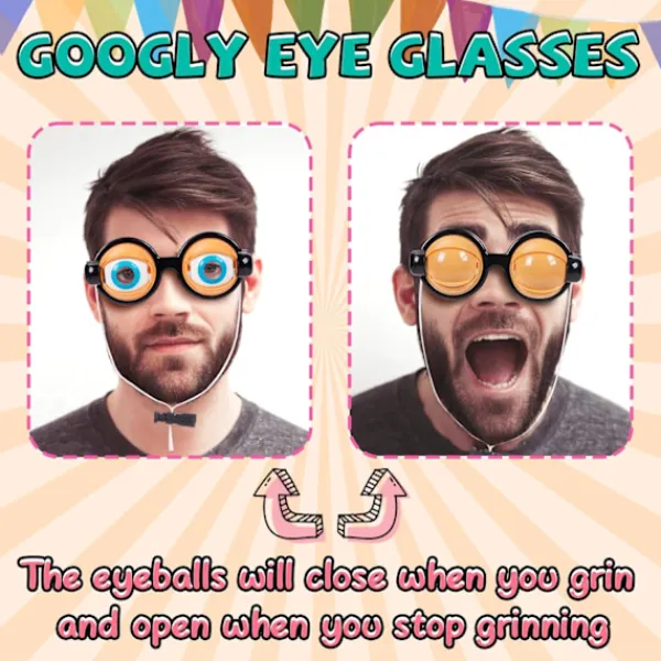 【Roliga Skämtgåvor & Spöken för Vuxna och Barn】Dessa googly-ögonglasögon blinkar när bäraren ler och skrattar. Det är en nyhet rolig skämtgåva.