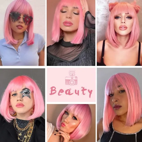 【DIY Kul】Luggen är tillräckligt lång för att klippas som du vill! Du kan enkelt styla med värme. Jag rekommenderar att du delar upp och trimmar lite för volym. Gör denna rosa bob-peruk mer naturlig. Och du kan också skapa olika frisyrer för att använda vid olika tillfällen. Det kommer att göra dig annorlunda och du kommer att älska hur det ser ut.