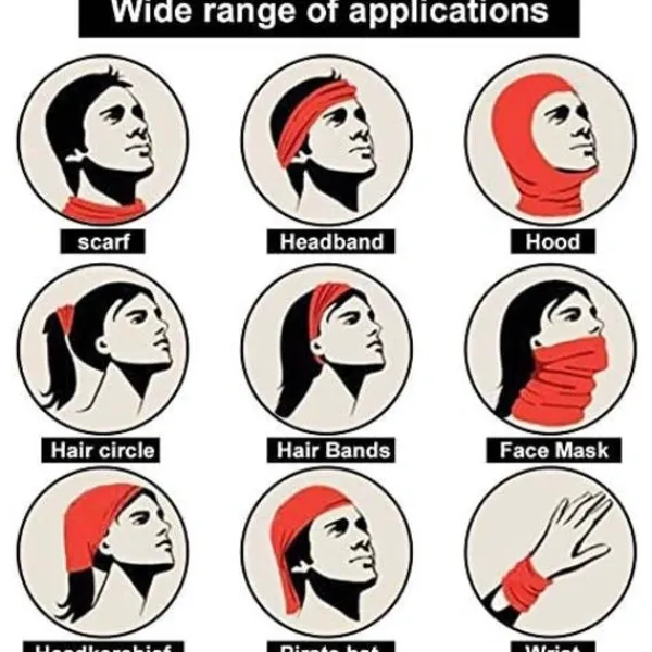Mångsidig: Kan användas som bandana, halsduk, hatt, pannband, armband, hjälmfoder, halsduk, dammskydd eller pannband. Lämplig för cykling, vandring, camping, skidåkning, bergsklättring, fiske, jakt, jogging, motorcykelkörning, etc.