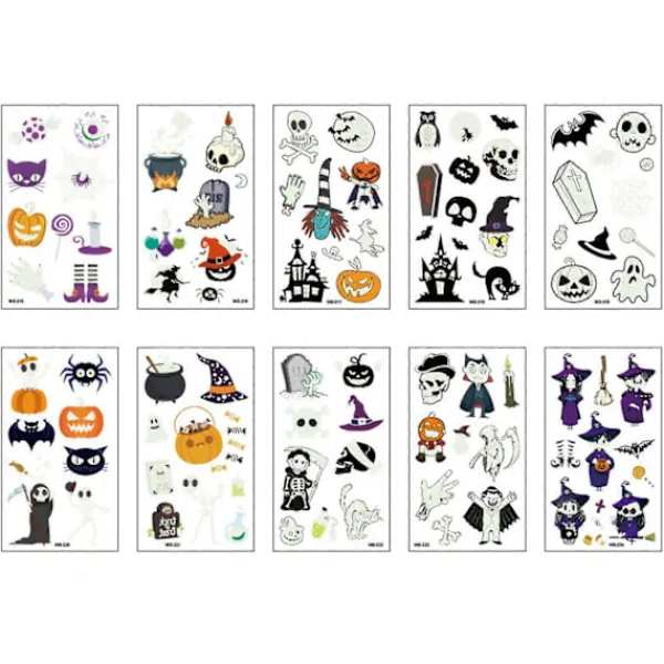 Funktioner: Halloween fluorescerande gröna tecknade roliga tatueringsklistermärken har fluorescerande grönt som huvudfärgton och designar olika roliga och intressanta Halloween-element för att visa upp din individualitet och unikhet under festivalen.