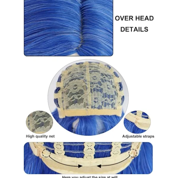 Trimma peruken för en bättre upplevelse: Det är bättre för kunderna att styla sina egna peruker efter personliga preferenser. Du kan trimma denna blå ledsna bob-peruk med hårgelé eller kam innan du bär den för att ha mycket roligt