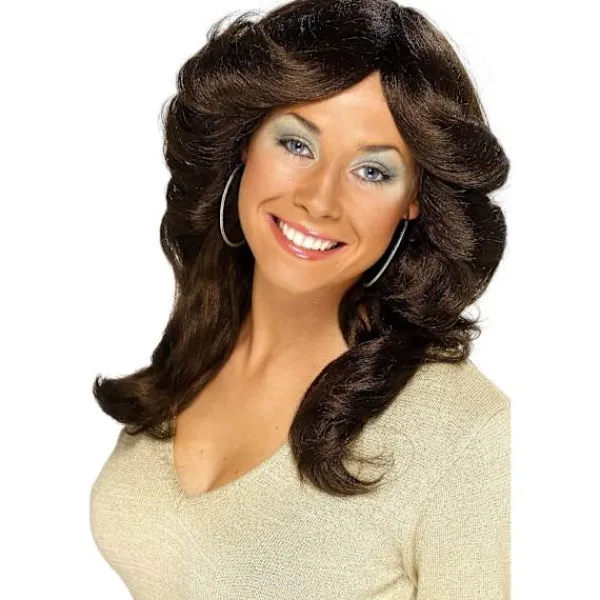 UTSM3010 – Smiffys Unisex Vuxen 70-tals Flick Lång Peruk One Size Brun.