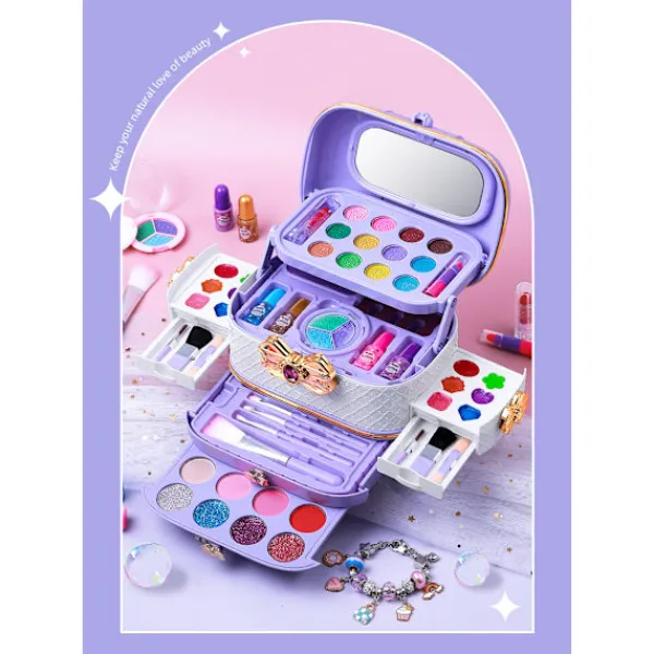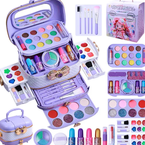 Funktioner 1. **Färgmatchning:** Ice Princess Makeup Set innehåller 32 multifunktionella sminkleksaker: 6 läppglans, 6 skimrande ögonskuggor, 6 rouge, 1 läppstift, 1 läppglans, 1 glitter, 3 vattenlösliga nagellack, 1 nagelklistermärke, 1 nagelfil, 2 tåseparatorer, 3 sminkborstar och en sminkväska med spegel. Utforska oändligt skoj med din lilla prinsessa. 2. **Ice Princess-tema leksak:** Varje liten flicka har ett flickaktigt hjärta. De drömmer alltid om att vara prinsessor i sagor. Vi bör skydda barns rena prinsessdrömmar. Ice Princess Theme Makeup Set uppfyller barns prinsessdrömmar samtidigt som det odlar deras organisationsförmåga. Lätt att rengöra och giftfritt: Ice Princess Makeup Set använder en vattenlöslig formula som är skonsam och icke-irriterande. Läppglansen är återfuktande och återfuktande utan att vara fet, vilket gör läpparna mer strålande. Den skimrande ögonskuggan är underbar och bländande; ingen sminkborttagning behövs, bara tvätta och torka. Vi lovar att våra produkter är giftfria och ofarliga, fria från bly, kadmium och ftalater och säkra för huden. Vid öppning kan barn känna den fruktiga aromen, och den kan enkelt rengöras med tvålvatten. 4. Stimulera barns kreativitet: Små flickor börjar sträva efter skönhet. Denna sminkleksak uppfyller inte bara prinsessans önskningar utan förbättrar också små flickors praktiska färdigheter och ger en realistisk sminkupplevelse. Genom olika kombinationer kan den forma och förbättra barns kreativitet, fantasi, färguppfattning, estetik och praktiska förmågor, vilket gör dem mer självsäkra. 5. Den bästa presenten till en liten prinsessa: Denna leksak, en favorit bland små prinsessor, håller dem borta från elektroniska produkter och låter dem helt släppa loss sin kreativitet. Denna produkt är en fantastisk present till Barnens dag, nyår, jul, födelsedagar och andra tillfällen, särskilt lämplig för flickor i åldern 4 till 10 år. Specifikationer: Material: Plast; Färger: Svart, Vit; Storlek: 17 x 11 x 9 cm; Vikt: 378 gram; Paketet innehåller: 1 x Tvättbart sminkset för barn