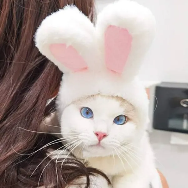 Fina husdjursdekorationer för påsk: Plyschhatten är designad med söta kaninöron och är ett bra påsktillbehör för ditt husdjur.