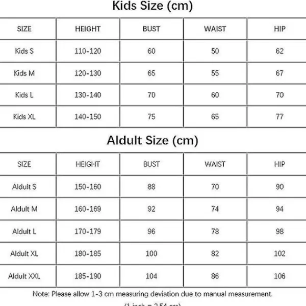 Om denna artikel Produktlista: Jumpsuit och Mask Tillfälle: Föreställning, Temafest, Cosplay, Halloween, etc. Färg: Som bilderna visar Stil: Jumpsuit Obs: Välj storlek enligt storlekstabellen, tack Storleksinformation *Om din mätning ligger mellan två storlekar rekommenderar vi att du väljer den större storleken (måtten som visas i storlekstabellen avser artikelns mått, inte kroppens). *1 tum=2,54 cm Obs: 1. Maskintvätt eller handtvätt, hängtorka. Blek inte. 2. På grund av skillnaden mellan olika bildskärmar kanske bilden inte återspeglar projektets faktiska färg. 3. Tillåt 1-3 cm skillnad på grund av manuell mätning (observera att 1 cm=0,39 tum) Tack för din förståelse.