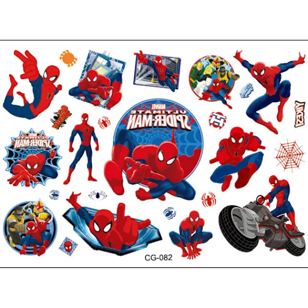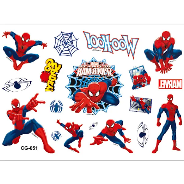 Om du älskar Spindelmannen-tatueringar är detta det perfekta setet för dig! Dessa fyra ark har fantastiska, fylliga designer. Ge dem som julklappar eller lägg till dem i godispåsar på barnkalas. Låt fantasin flöda och vi är säkra på att de kommer att ge