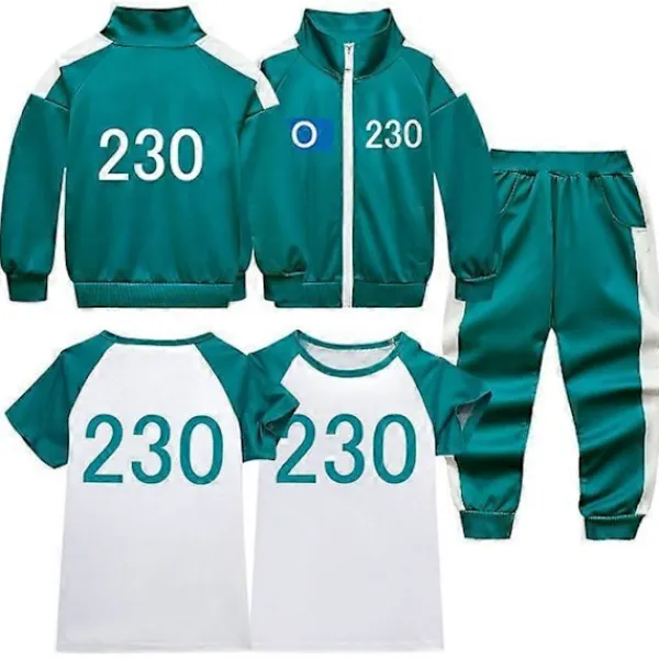 Komplett Squid Game Cosplay-set: Detta 3-delade kostymset inkluderar en jacka, en kortärmad tröja och byxor, vilket ger dig allt du behöver för att ge liv åt din Squid Game-karaktär.
