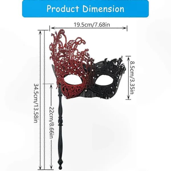 Funktioner: Perfekt för Halloween, julfester, karnevaler, maskeradbaler, maskeradfester, Mardi Gras, bröllop, baler, kostym cosplay-evenemang, renässansdräkter, modevisningar, maskevenemang, nattklubbar, möhippor, scenframträdanden, teaterproduktioner och maskeradtillfällen. Material: Maskeradmask tillverkad av plastmaterial med ett moderiktigt utseende, vilket gör Mardi Gras-masken mer attraktiv och iögonfallande på fester. Universell passform och lätta strass säkerställer komfort och förbättrar ditt utseende. Underbar gåva: Maskeradmask med pinne är en söt och omtänksam gåva till vänner, familj eller dig själv. Avtagbar design: Maskeradmasken med pinne möjliggör enkel borttagning, vilket gör att du kan matcha den efter olika tillfällen. Specifikationer: Material: Plastspets Färg: 01, 02, 03, 04, 05, 06, 07 Paketet innehåller: 1 st Maskeradmask Obs: Tillåt 1-2 cm fel på grund av manuell mätning. På grund av skillnader mellan bildskärmar kanske bilden inte återspeglar objektets faktiska färg.