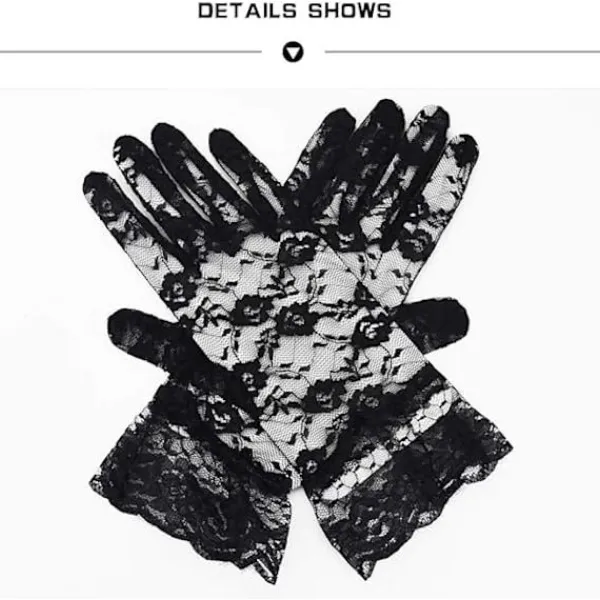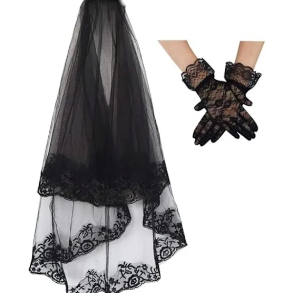 Elegant spetsdesign: Som du kan se på bilderna är vår brudslöja dekorerad med spetsar i kanterna, vilket ger dig en känsla av romantik. Matchande med den svarta spetsslöjan är våra handskar också blommiga spetsmönster, ett bra komplement till din outfit.