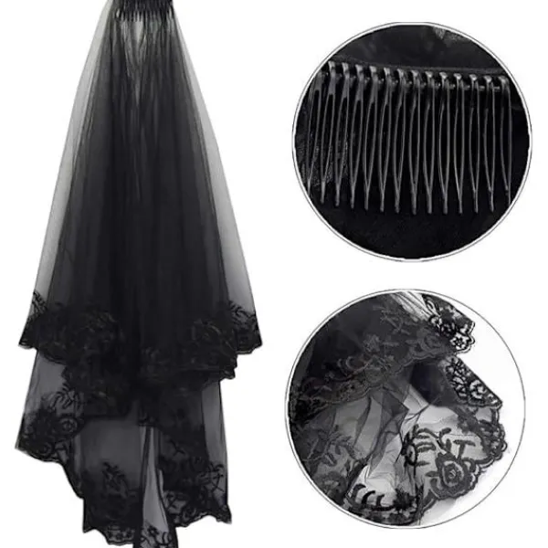 Robust kam: Varje brudslöja är designad med en kam som enkelt kan fästas i ditt hår. På bara några sekunder kan den vackra svarta slöjan vara på plats, enkel att använda och ta bort.