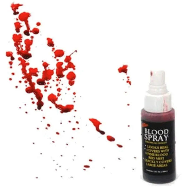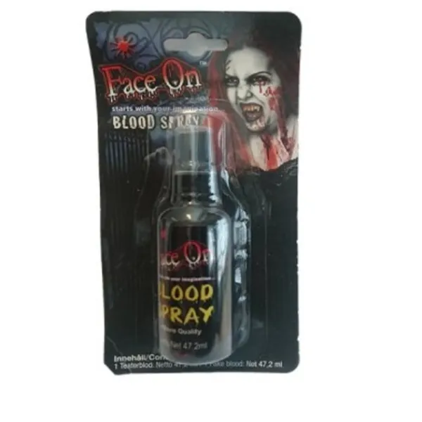 Teaterblod med praktisk sprayfunktion från Face On innehåller en vätska som ser ut som blodstänk när du sprayar den på kläder eller din kropp.