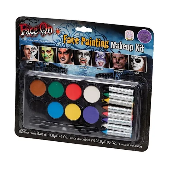 FaceOn Ansiktsfärg Sminkset innehåller 8 ansiktsfärger (16 g) och 8 färgkritor (29,77 g), samt en make up-pensel.