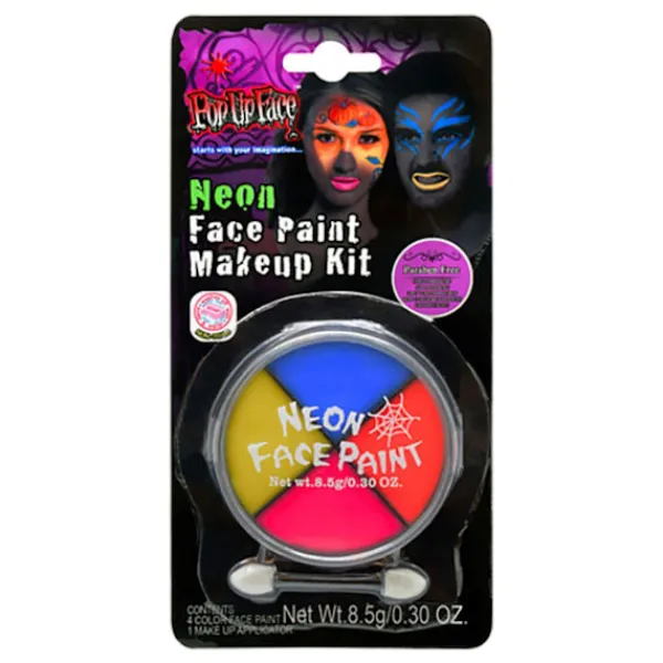 På denna palett finns 4 st färgerna blå, orange, röd och gul och en pensel. Färgen lyser upp i UV-ljus och blacklightbelysning och en pensel.