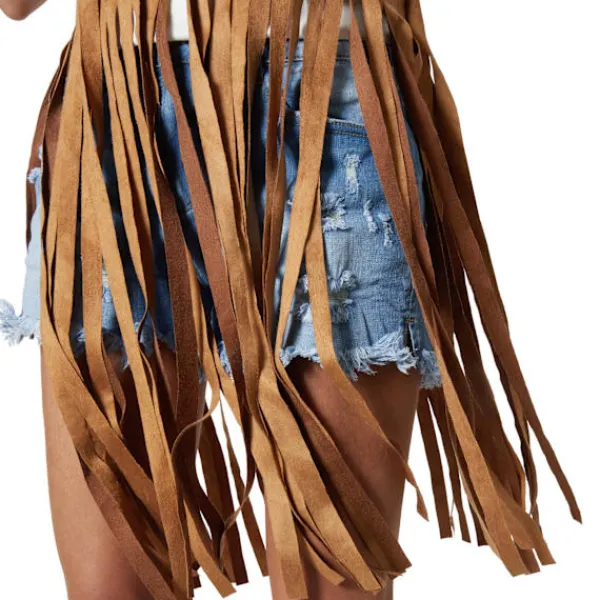 Västen är löst skuren och ger din outfit den typiska hippielättheten. Kombinera den med färgglada klänningar, utsvängda byxor eller fransstövlar för att skapa din individuella hippielook. De medföljande accessoarerna ser till att din outfit är perfekt matchad från topp till tå.