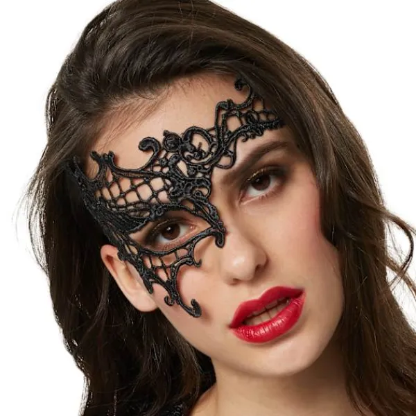 Den svarta spetsmasken Fantomina omges av en mystisk och hemlighetsfull aura med en erotisk touch. Den filigrana ögonmasken i venetiansk stil är partiellt genomskinlig men visar inte allt. Det lätta materialet känns behagligt mot huden. Med de två smala chiffongbanden kan den eleganta masken anpassas till varje huvudstorlek, Material: 100 % polyester.