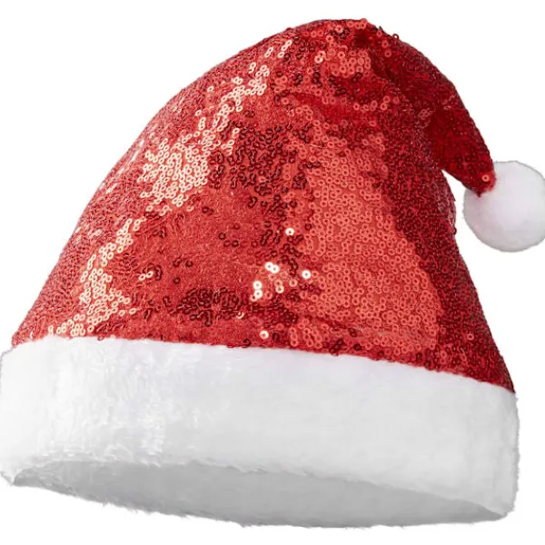 Tomteluvan med röda paljetter ger din outfit en extra portion glittrig glans. Den breda kanten i vit plysch garanterar en hög bärkomfort. Luvans spetsiga form med den typiska garnbollen ger den ett förtjusande och charmigt utseende. Med denna tomteluva med röda paljetter kommer du garanterat att se glamorös ut, Material: 100 % polyester.