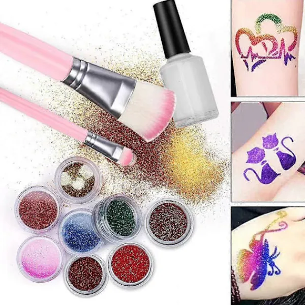 Hudvänlig för Alla Människor. Detta tatueringsglitter är tillverkat av miljövänligt material, det är säkert och modernt. Lämpligt för barn att ha kul, för skönhetsälskare och gentlemän.