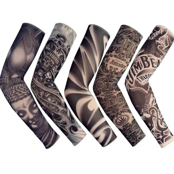 Rimligt pris med bra kvalitet5 st Buddha, dödskalle, tribal, Maori och örndesign, fashion, cool och originellDessa tillfälliga tatueringsärmar är perfekta för daglig användning som ridning, motorcykel, camping eller temafester, Halloween-kostymer och utekvällarBättre var för hand och häng den för att torka för längre användning