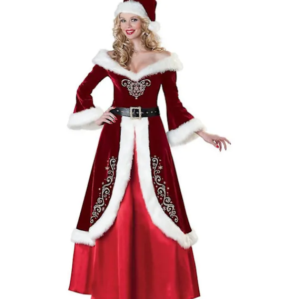 Tomtedräkt Röd Deluxe Sammet Julklänning Kostym Dam