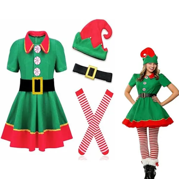 Från Fun Clothing: Med årtionden av erfarenhet erbjuder vi stolt ett brett urval av julkläder, som denna festliga tomtekostym. Denna gröna klänning kommer garanterat att hjälpa dig att lägga till lite extra magi till dina julaktiviteter!