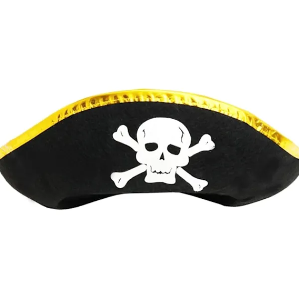 Hatten är en typisk tricornhatt med Jolly Roger dödskalle och korslagda ben framtill, vilket gör den idealisk för kostymer.