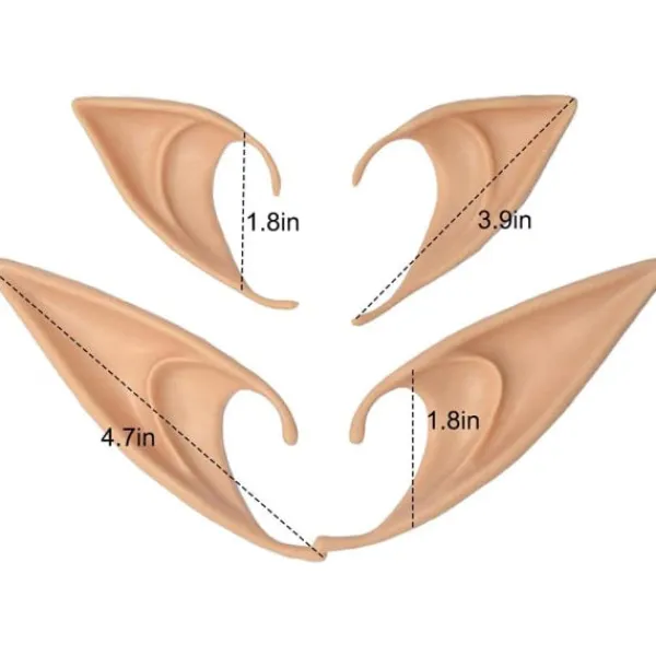 Storlek – 2 olika par tomteöron. Ett par korta och ett par lite längre. långt elföra är: 5,5 x 2 tum, kort elföra är 4 x 1,8 tum.