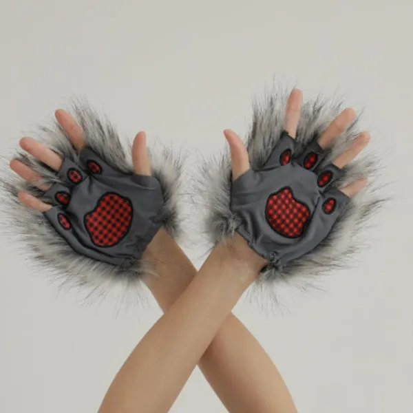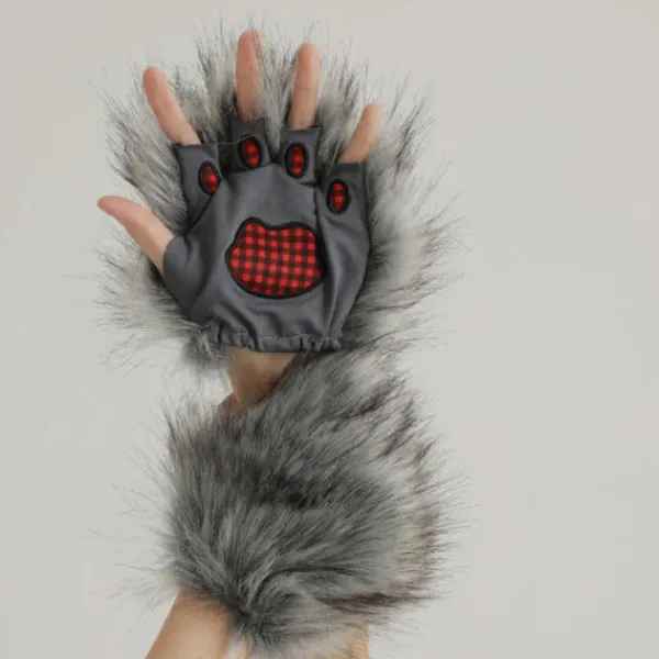 1 st Faux päls Plysch Lurvig Katt Klo Handskar Fursuit