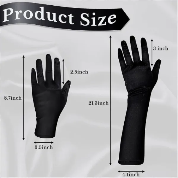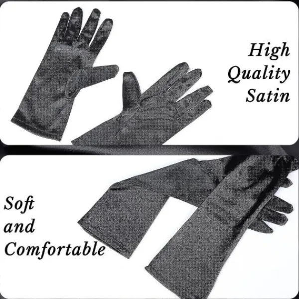 Perfekt set: du får 2 par svarta festliga handskar, inklusive 1 par korta satinhandskar och 1 par långa satinhandskar. Dessa satinhandskar räcker för att möta dina klädbehov under olika årstider. Mjukt och bekvämt material: dessa svarta kvällshandskar är gjorda av elastiskt satinmaterial, med en glansig och slät yta. De är bekväma att ta på och bära, skonsamma mot huden och ger långvarig användning. De är fulla av vintage och klassisk stil och passar bra till kläder i olika färger och stilar, som bröllopsklänningar eller aftonklänningar. Dessa svarta häxhandskar kan framhäva din charm och skönhet. Passande storlek: varje lång satinhandske är ca. 40 x 10 x 0,5 cm/15,75 x 3,94 x 0,2 tum, och den korta operahandsken är ca. 30 x 9 x 1 cm/11,81 x 3,54 x 0,39 tum. De är elastiska och stretchiga, lämpliga för de flesta kvinnor och flickor. Dessutom passar dessa svarta handskar också bra till skidåkning, bergsklättring, löpning, vandring, paintball-skytte eller motorcykling.
