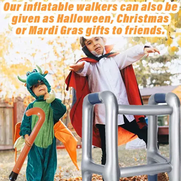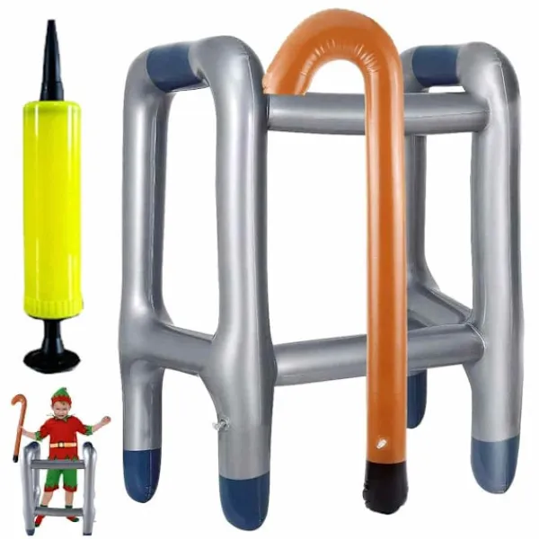 Detta är en utmärkt uppblåsbar leksak och skämtartikel. Tillverkad av PVC-material, hållbar, säker, spricker inte lätt och kan användas om och om igen. Rollatorn har ett aluminiumutseende och käppen har ett fantastiskt träutseende. Den realistiska designen kan ge mycket glädje. Kombinationen av den uppblåsbara rollatorn och käppen är ett perfekt tillbehör till mormors- eller morfar-kostymen, den kan också användas som en födelsedags- eller pensionspresent. Lämplig för olika fester, firanden, rollspel och scenkostymer, etc. Perfekt som en semesterpresent.