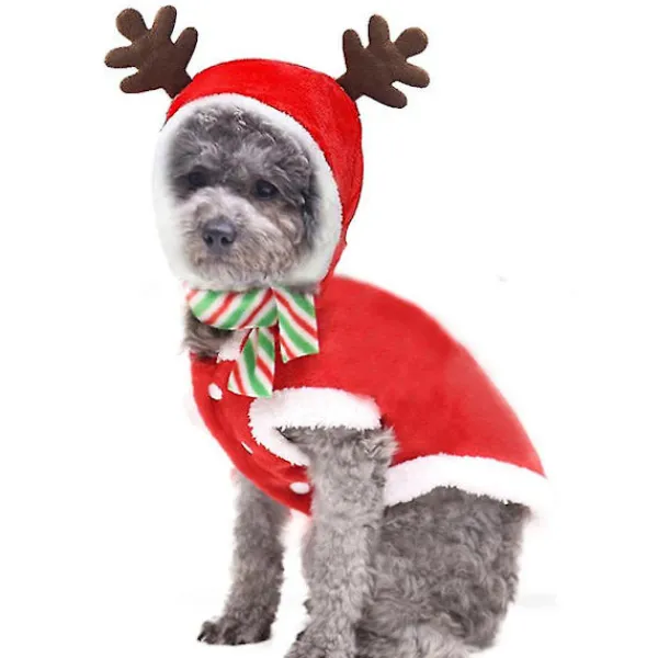 Juldräktset med halsduk för hundvalp, katt, julälg, julkläder, cosplay, klä upp sig, festkläder, outfit