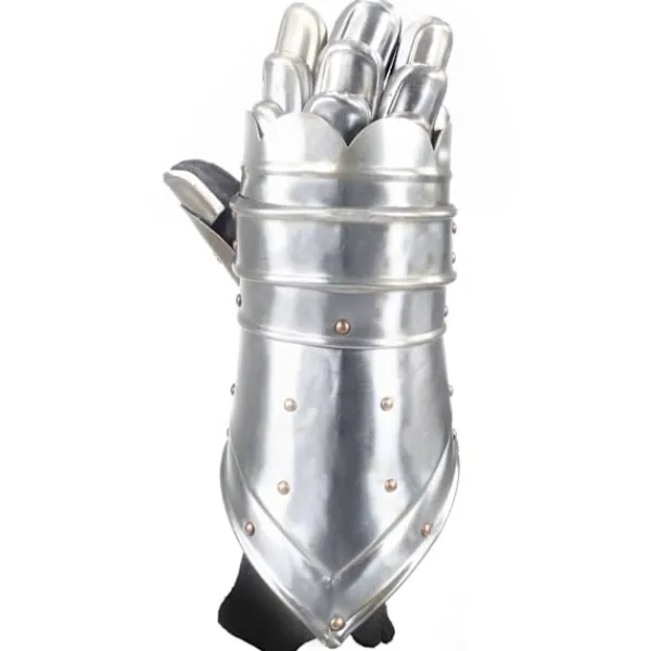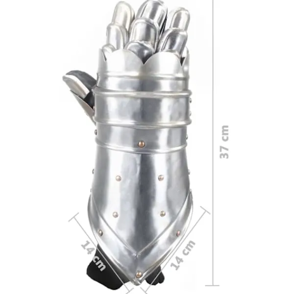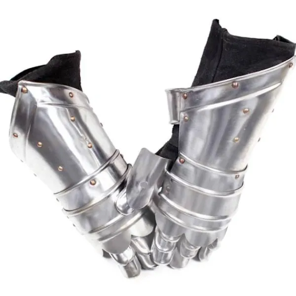 Harneskhandskarna är perfekta för att komplettera din riddarrustning. De erbjuder ett bra skydd och är perfekta för LARP (live action rollspel), cosplay, teater och historiska återberättelser. Harneskhandskarna är en kopia av medeltida harneskhandskar. De är lätta att bära och tillåter fullt rörelseomfång för dina händer, fingrar och handleder. Varje finger är täckt i stålfjäll för flexibilitet och rörlighet. Harneskhandskarna är tillverkade i 18-gradigt stål med ett behagligt sammetsfoder. De antika handskarna har utformats för att skydda händer, handleder och delar av armarna.