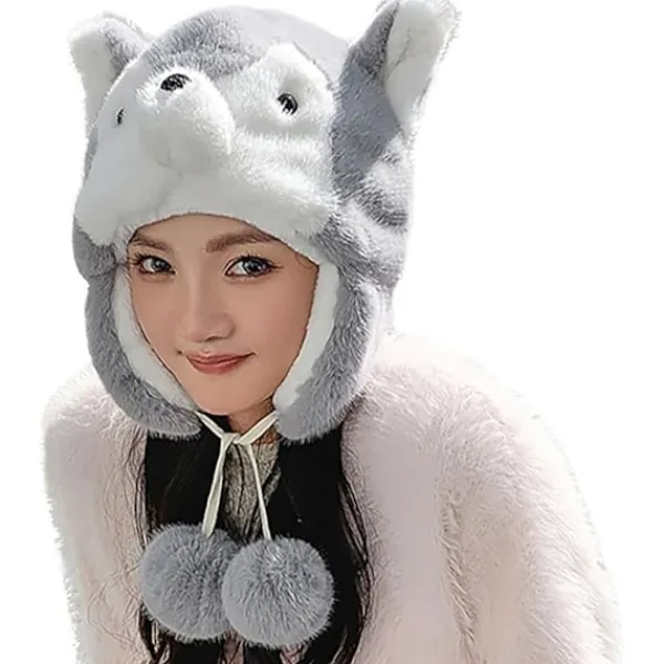 Söt Design: Den vindtäta öronlappshuvudmössan designad med tecknade huskyöron och näsa på toppen, gör dig mer attraktiv och bedårande, alltid omtyckt av kvinnor och män. Ett bra tillbehör för vardagligt bruk under vintersemester och kallt väder