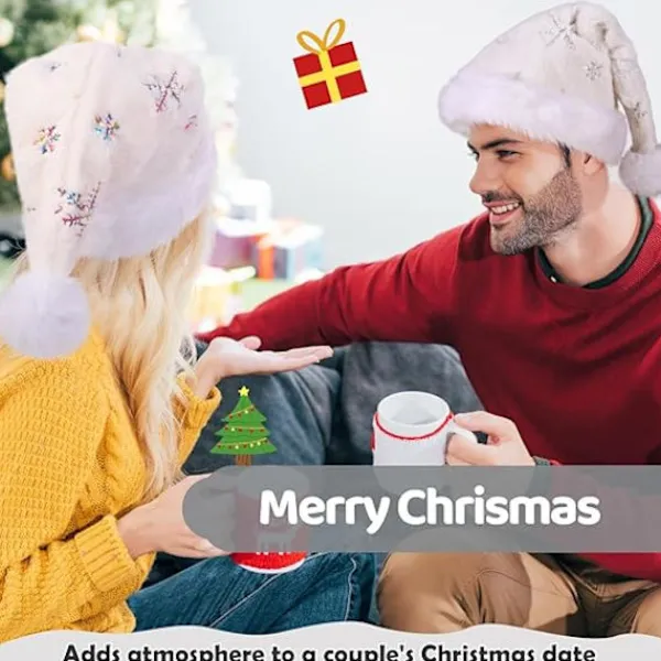 🎅 Dubbelskiktsfoder: Tomtehattar är dekorerade med snöflingor, paljetter reflekterar ljuset från jullampor, ljusa och bländande, berikar julstämningen väl.