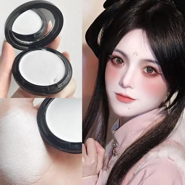 Efter applicering av foundationkräm, använd vitt löspuder