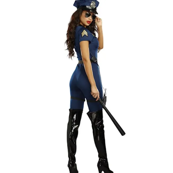 Vår polisdräkt för kvinnor är gjord av 95 % polyester, 5 % spandex som är supertålig och gjord med material av överlägsen kvalitet som håller för fler Halloweens framöver.