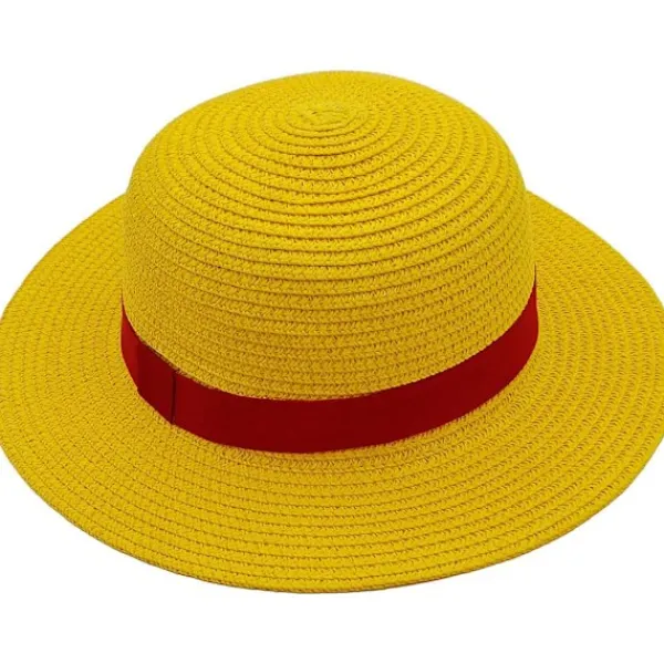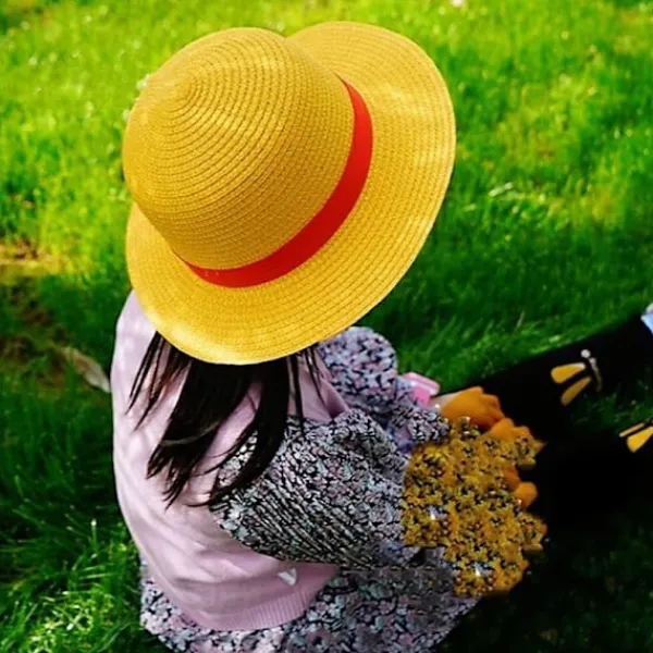 Lufys halmhattsdesigninspiration: Oavsett var han är bär Lufy sin halmhatt genom absolut allt, även om hatten i början var benägen att slås av huvudet, vilket tvingade Lufy att antingen lägga undan den eller få någon att hålla i den under slagsmål. Från Arabasta Arc och framåt har han fått en snörrem till den, som syddes på av Nami, vilket gör att hatten kan hänga runt halsen under slagsmål. Han hade också en dekorativ halsduk lindad runt sin halmhatt. Så vår halmhatt föddes.