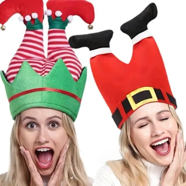 SUPER VÄRDEPAKET. Våra söta och roliga julhattar inkluderar upp-och-ner-byxor tomte eller elf med små stövlar och glittrande bältesbucklor. en storlek passar alla vuxna.