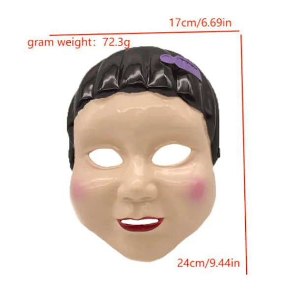 Realism Design: Denna Squid Game 2-inspirerade skräckmask för små flickor har detaljerade detaljer som ger karaktären liv, perfekt för festklädsel eller cosplay-evenemang.