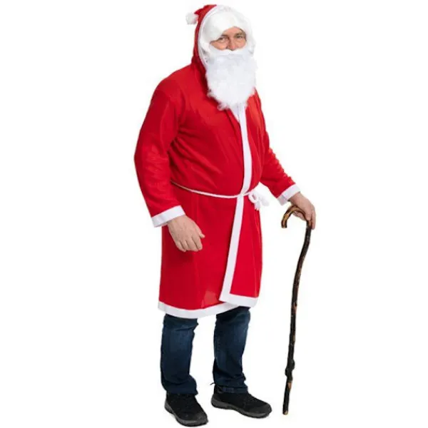 Tomterocken med luva och skägg är det perfekta valet för den som vill sprida julglädje med traditionell tomtestil. Rocken har en bekväm passform och går till knähöjd, vilket gör den både praktisk och snygg att bära under utdelningen av julklappar. Det mjuka fleecematerialet känns behagligt mot huden och ger en varm och inbjudande känsla.