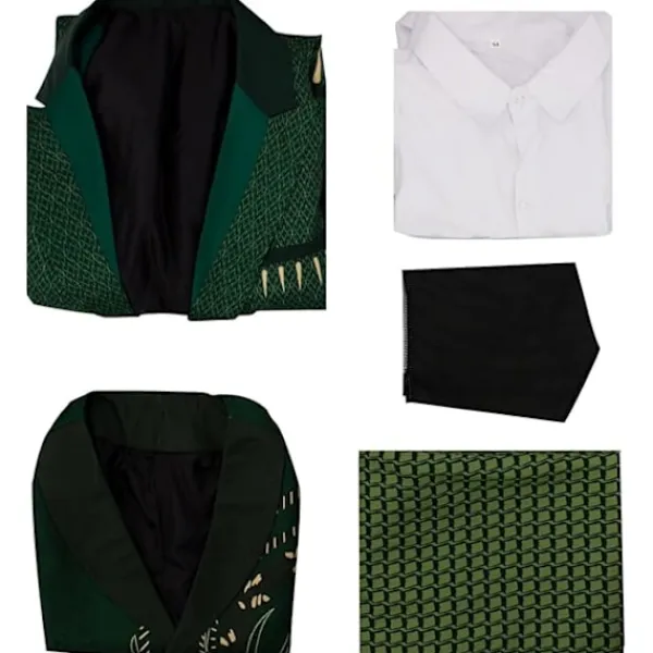 Detta OZ Magician Warlock-set inkluderar en högkvalitativ jacka i bomull och polyester, T-shirt, byxor, väst och halsduk, perfekt för Halloween-kostymer och cosplay.