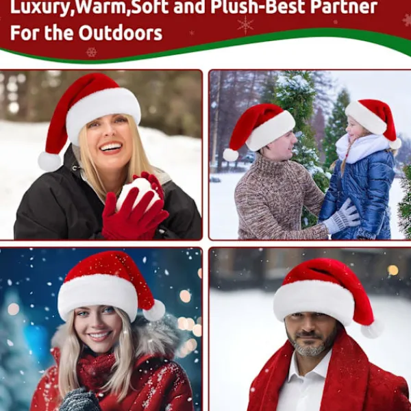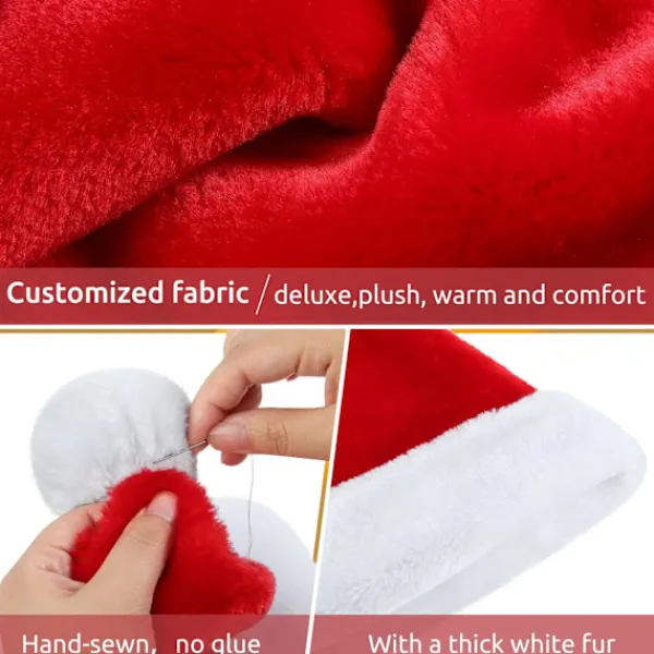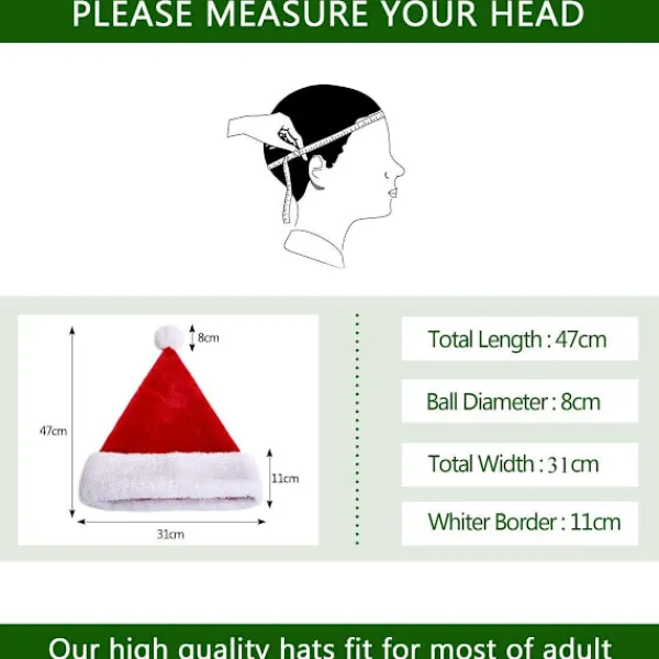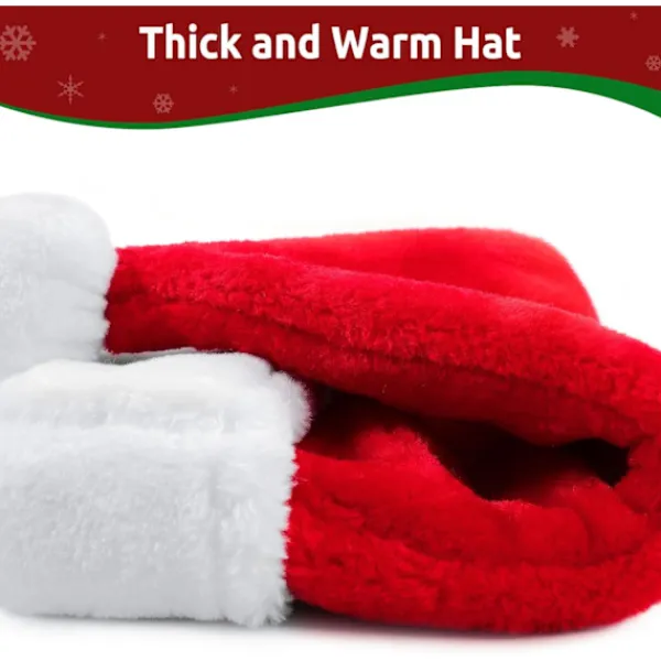STORLEKSTIPS FÖR VÅR TOMTELUVA: Storleken är 31 x 48 cm (B x H), lämplig för de flesta vuxna. Tomteluvan är gjord av förtjockat, fluffigt och plyschmaterial, vilket gör den mycket mjuk och bekväm att bära. Fördel: Tomteluvan är färgbeständig och slitstark, vilket gör att den kan återanvändas många gånger. Den kan tvättas och återanvändas. Gåva till din familj: Den klassiska tomteluvan är vackert designad med ett vitt extra tjockt plyschband och pom-pom-topp som alla dina familjemedlemmar kommer att älska. GÅVA TILL DIN FAMILJ: Klassisk hatt är vacker med vitt extra tjockt plyschband och pom-pom-topp som alla dina familjemedlemmar kommer att älska. Komfort: Den mjuka plyschstrukturen gör tomteluvan bekväm att bära, även under långa perioder. Inga repor eller obehag – bara ren komfort.