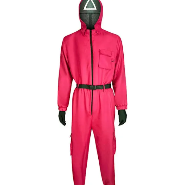 OFFICIELT LICENSIERAD SQUID GAME VAKTDRÄKT – Hjälp till att kontrollera Squid Game och hålla spelarna i linje när du bär denna Triangle Guard Jumpsuit-dräkt!