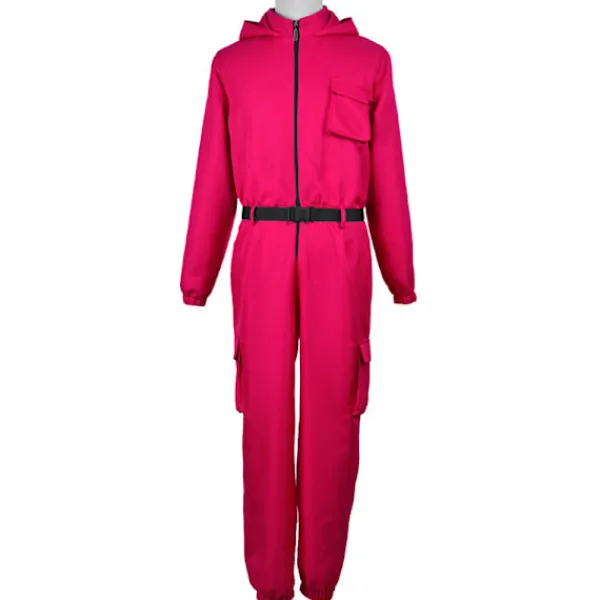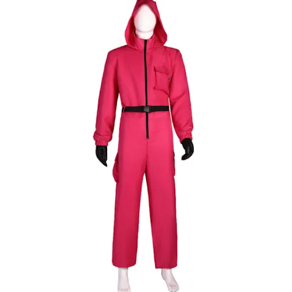 AUTENTISK SQUID GAME DRÄKT JUMPSUIT – Denna dräkt har en hel huvad jumpsuit med en mock-krage och falska fickdetaljer