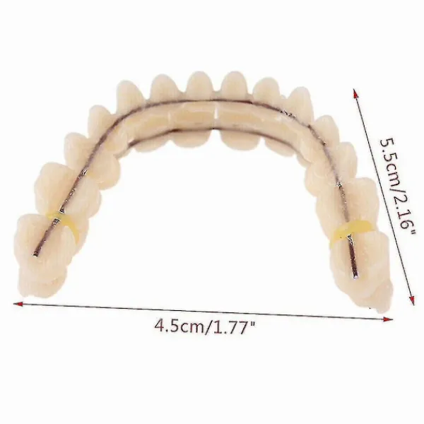 Specifikationer: Tandprotes som används på patienter med tandimplantat. Anti-blekning, anti-missfärgning och anti-mikrosprickegenskaper. Material: Harts. Färg: Vit. Skick: 100 % helt ny och hög kvalitet. Paketet innehåller: 1 set tandsimulering. Obs: Färgerna kan skilja sig något beroende på bildskärmens inställningar. Tillverkad av YOUGANG
