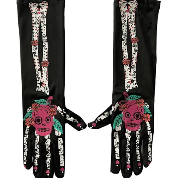 Detta är ett par hemska skallehuvudhandskar, tillverkade av material, säkra och hållbara, en lång period att bära. Kreativa skallehuvudhandskar, ser så attraktiva och speciella ut. Om du bär dem på din Halloween-fest kommer du att vara den mest speciella.